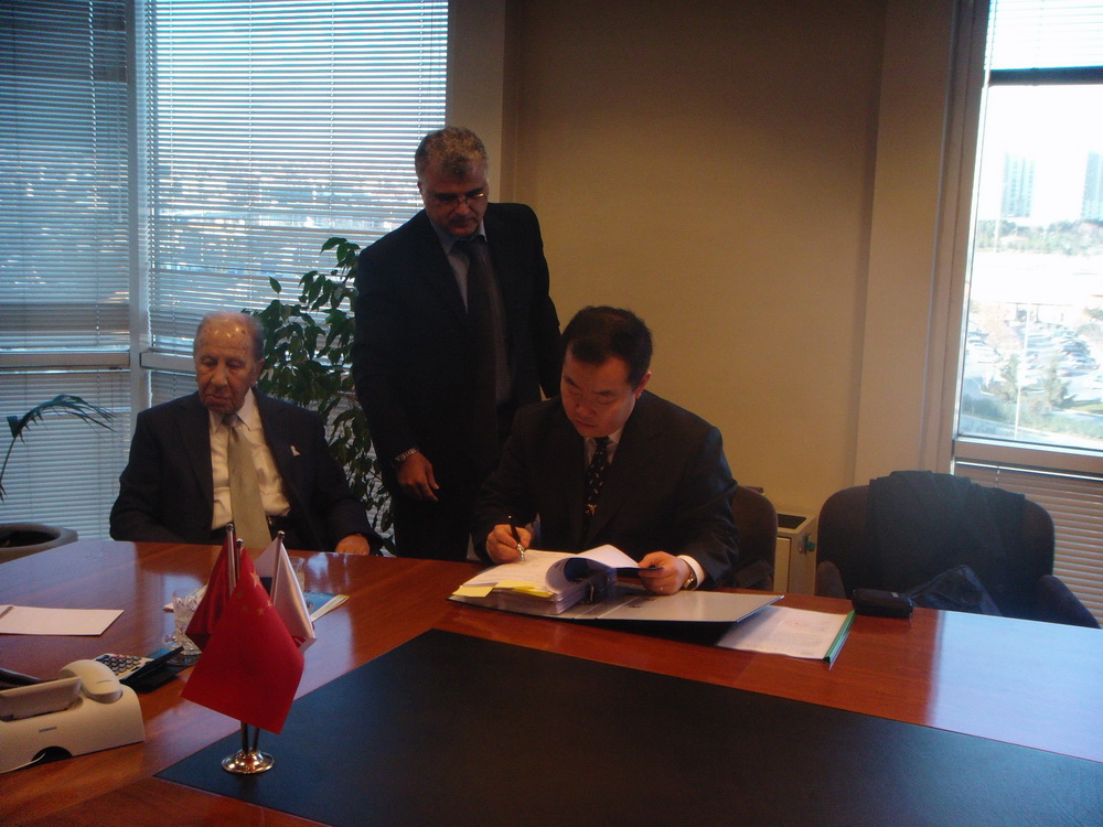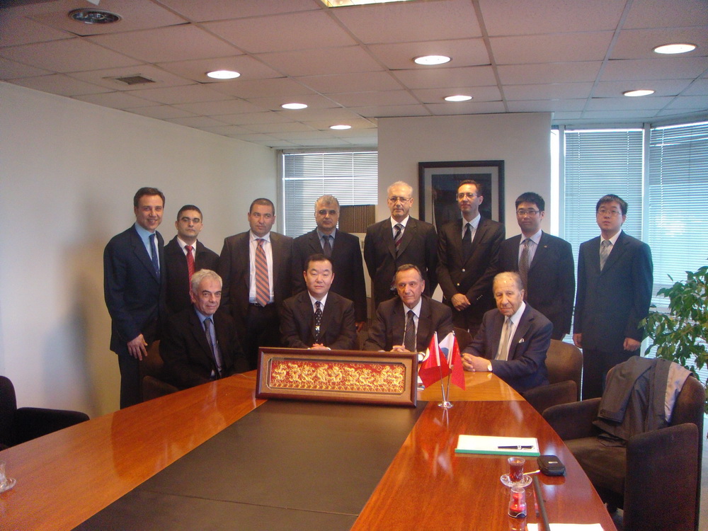 中材節能市場部部長王毅、項目經理曲鐵政、劉強及洪會林與Nuh Cimento Sanayi A.S.水泥公司董事長Mr. ATALAY SAHINOGLU、執行董事Mr. OZER YURTBILIR及項目組成員共同出席了合同簽約儀式。