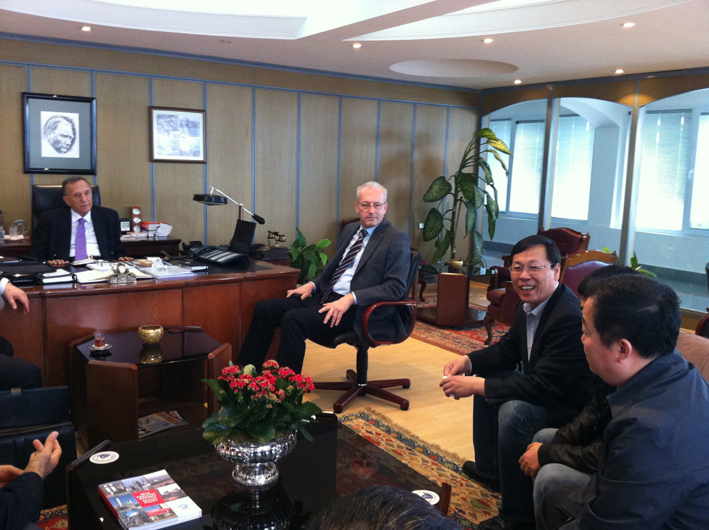 在視察過程中,胡也明總裁與NUH Cimento Sanayi A.S. 水泥公司主席Atalay ?AH?NO?LU先生、總經(jīng)理Hayrettin ?ENER先生進(jìn)行了親切會(huì)談,向他們介紹了中國改革開放以來水泥行業(yè)取得的驕人成績以及中材節(jié)能股份有限公司在余熱發(fā)電行業(yè)獲得的各項(xiàng)成果,感謝NUH Cimento Sanayi A.S. 水泥公司對(duì)項(xiàng)目實(shí)施給予的大力支持與合作,并真誠邀請(qǐng)Atalay ?AH?NO?LU先生和Hayrettin ?ENER先生在合適的時(shí)候?qū)χ胁墓?jié)能股份有限公司進(jìn)行訪問。