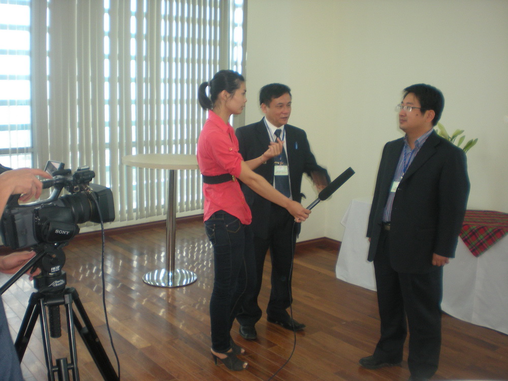研討會(huì)期間,葛立武副總裁還接受了越南中央電視臺(tái)第一頻道VTV1關(guān)于“余熱發(fā)電技術(shù)市場(chǎng)前景及中材節(jié)能在越南開(kāi)展余熱發(fā)電項(xiàng)目模式”的專(zhuān)題采訪。葛立武副總裁圍繞主題簡(jiǎn)要介紹了余熱發(fā)電系統(tǒng)在節(jié)能減排事業(yè)中舉足輕重的地位,同時(shí)回答了記者朋友們關(guān)心的“如何在越南開(kāi)展余熱發(fā)電項(xiàng)目”的提問(wèn)。