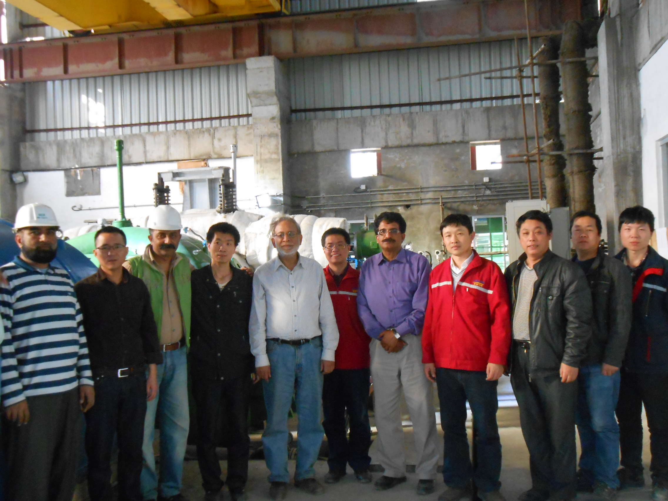 為做好該項目,以項目經(jīng)理王建峰為首的項目部,在公司技術(shù)部、工程部、采購部、費控部、后期服務(wù)部等部門大力配合和支持下,克服各種困難,積極應(yīng)對項目實施中存在的難題。特別是在土建施工過程中,由于土建隊伍是當(dāng)?shù)毓荆┕みM(jìn)度緩慢,從2014年1月土建動工,到2015年2月,土建工程才基本完工,嚴(yán)重制約了項目的安裝和調(diào)試工作。項目部針對這種情況,提出倡議:“大干苦干50天,奮力拼搏工期趕;實現(xiàn)雙贏立豐碑,提前發(fā)電戰(zhàn)困難”。該倡議一經(jīng)提出得到了業(yè)主的積極響應(yīng),業(yè)主總經(jīng)理Siddiq先生,每天給他們的主要負(fù)責(zé)人及項目部發(fā)送指令,配合中材節(jié)能全力以赴,共克時艱,確保項目力爭早日發(fā)電。春節(jié)期間,公司總裁胡也明親自到項目部進(jìn)行慰問,給了項目部員工更大的鼓舞和信心。項目經(jīng)理王建峰,媳婦剖腹產(chǎn),可是面對現(xiàn)場繁忙的工作,在第七天出院后于臘月二十八就趕回了現(xiàn)場。現(xiàn)場經(jīng)理岳遠(yuǎn)峰,已經(jīng)是第三個年頭在現(xiàn)場過年了,面對汽輪機(jī)廠家無法按時達(dá)到現(xiàn)場的問題,他毅然承擔(dān)起了汽輪機(jī)調(diào)試的重任,他與調(diào)試單位密切配合,使汽輪機(jī)平穩(wěn)、安全的運行起來。電氣設(shè)計工程師王海路,在現(xiàn)場一待就是5個月,任勞任怨,查圖紙,跑現(xiàn)場,與業(yè)主討論方案,與廠家溝通,成功的完成了技術(shù)指導(dǎo)服務(wù)。現(xiàn)場翻譯張?zhí)飙t,從沙特NCC項目趕來,除了做好溝通翻譯外,還積極參與項目協(xié)調(diào)配合工作。后期服務(wù)部的楊玉斌與調(diào)試單位密切配合,使得調(diào)試工作有條不紊的推進(jìn)。正是項目部員工“舍小家顧大家”的精神,才能實現(xiàn)提前并網(wǎng)發(fā)電。