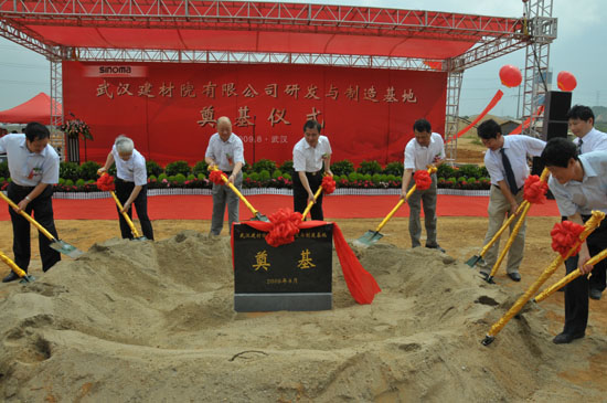 8月8日,在公司成立兩周年之際,中材節能發展有限公司與武漢建筑材料工業設計研究院有限公司的戰略重組又結出首份果實——投資2.4億元、占地面積110畝、規劃建筑面積近7萬平米的研發與制造基地落戶武漢東湖新技術開發區鳳凰產業園,并于當日舉行了開工典禮奠基儀式。